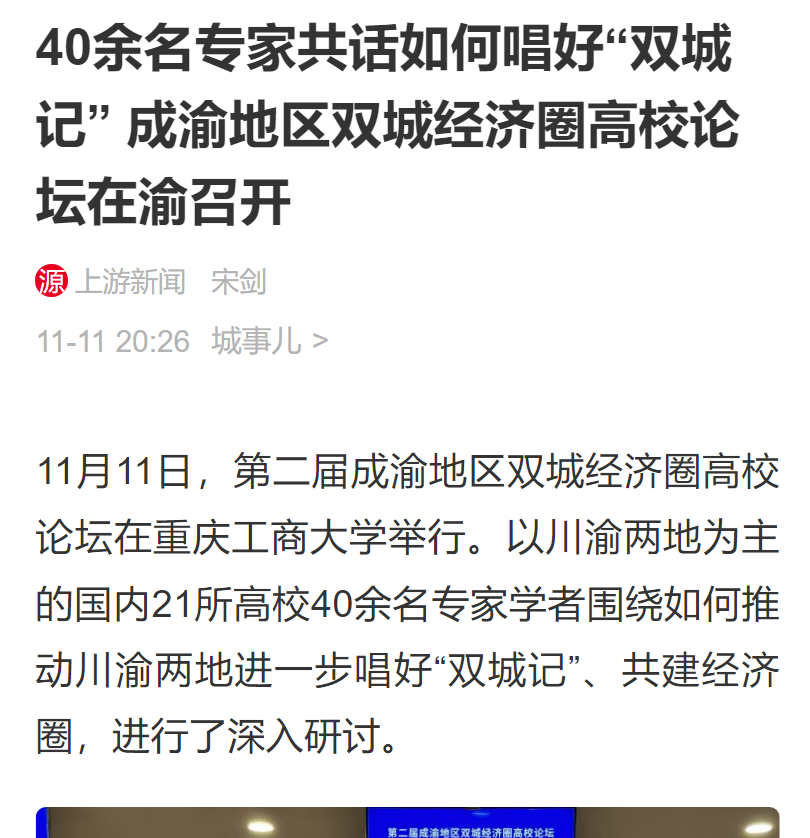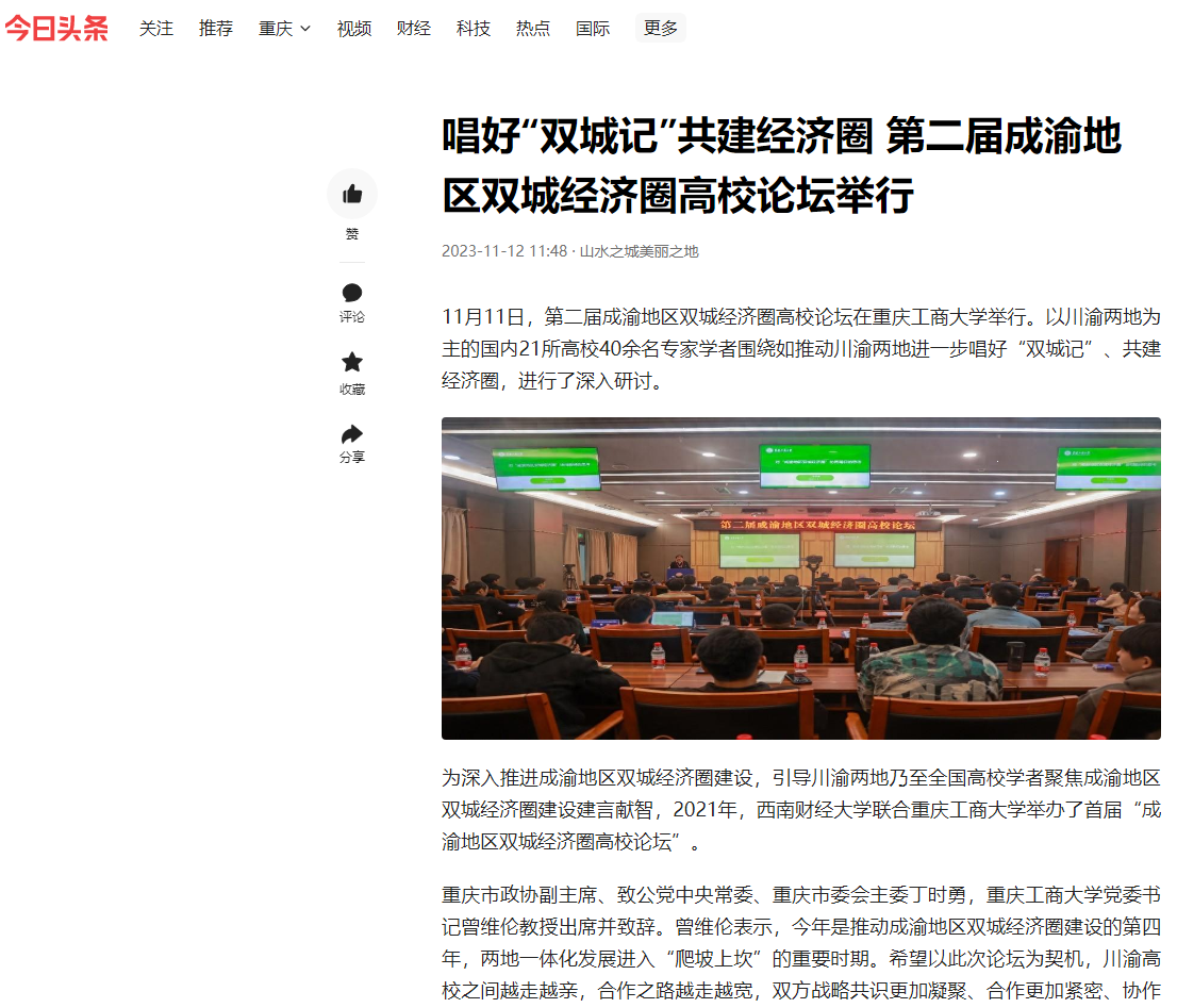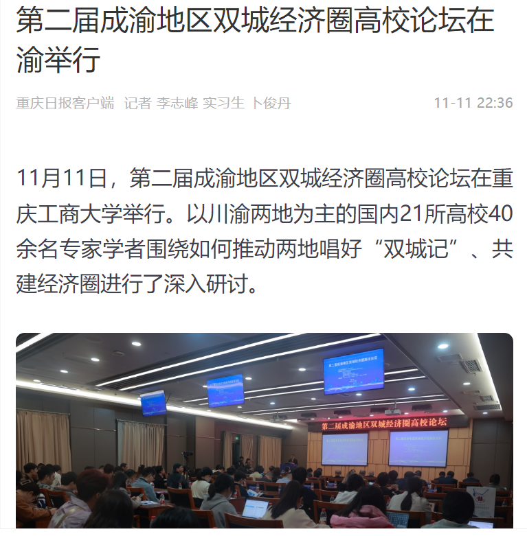 据悉,本届论坛邀请了来自国内21所高校40余名专家学者围绕如何推动川渝两地进一步唱好“双城记”、共建经济圈、成渝地区双城经济圈共建全国战略腹地、打造中国经济“第四增长极”等主题进行了交流分享和深入研讨。