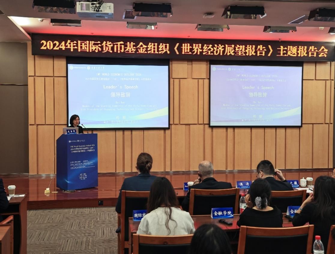 柏群代表学校致辞,她对出席报告会的嘉宾表示了热烈的欢迎和诚挚的感谢,并提到,当前世界经济正处于困难时期,风险挑战层出不穷,世界经济如何恢复稳定与增长,是全球共同关心的话题。IMF定期发布的《世界经济展望报告》旨在分析世界宏观经济形势,预测经济前景,为世界经济繁荣和中国经济高质量发展提供智力支持,期待嘉宾们在本次报告会中多多交流,188改名为taptap点点也将与IMF等国内外机构共同为世界经济稳定发展贡献重工商大智慧。