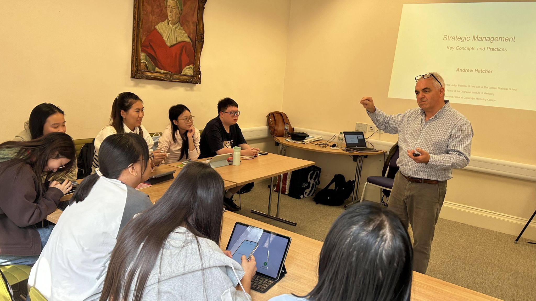 抵达剑桥后,师生们首先参观了Corpus Christi学院,深入了解了剑桥大学的历史和学院制制度。剑桥大学优秀博士生Dr. Shang讲解了英美学术研究的差异,激发了同学们对国际学术环境的兴趣。在接下来的日程中,来自剑桥大学的Andrew教授,Alex教授和Kasia教授通过丰富有趣的主题讲座,围绕创新与领导力、商业模式与战略和跨文化交流和发展等内容,与访学师生进行深入交流。三位教授不仅提供了宝贵的理论知识,进一步拓宽了同学们的学术视野,同时积极与同学们展开讨论,促使同学们思考,激发了同学们的研究兴趣与学术热情。师生们参观剑桥雷恩图书馆、三一学院和国王学院,感受剑桥大学的学术氛围;师生们参观伦敦大英博物馆、伦敦金融城及英格兰银行博物馆,体验了全球金融中心的运作。