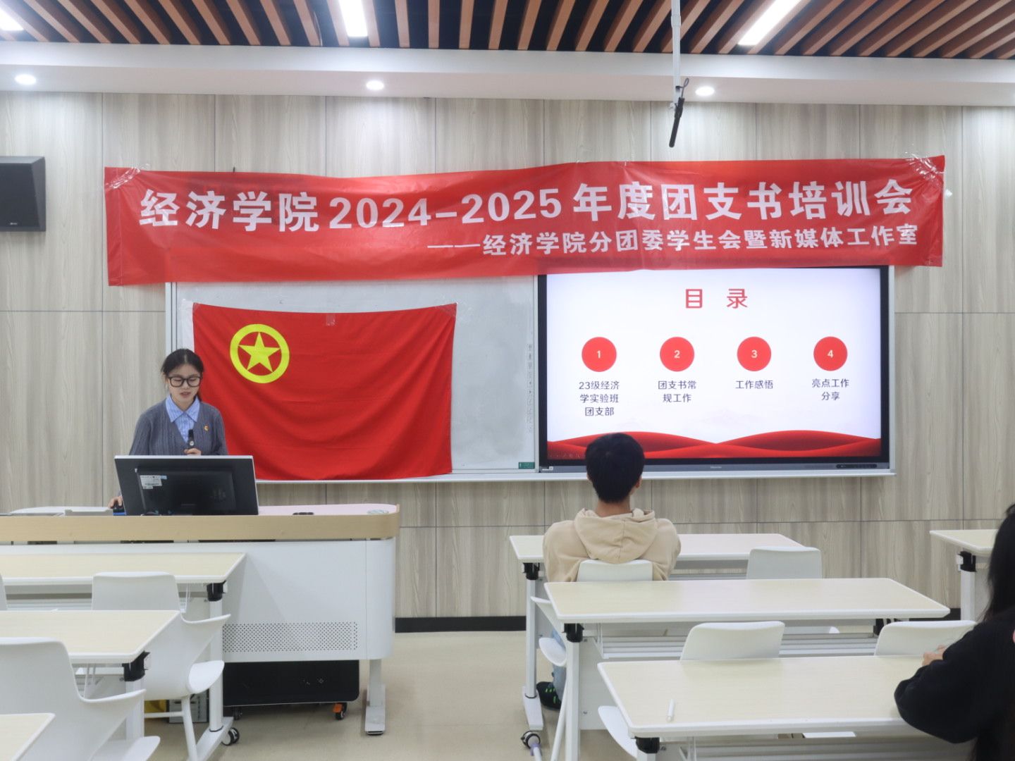 随后,原2023级经济学实验班团支书倪雨彤从团支部工作感悟、班团活动展示等方面进行经验分享,为与会团支书提供了工作范本和宝贵经验。