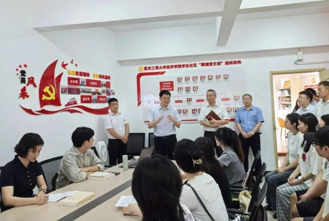 龙东阁一行调研了翠湖书院员工社区心理工作室、跨境电商工作室和习近平经济思想员工宣讲团等,指导了习近平经济思想员工宣讲团主题团日活动。活动中,宣讲团成员王洁妤与周星宇就《习近平经济文选》(第一卷)新质生产力等内容进行了宣讲,梁松婷与张恩曦同学分享了自己的心得体会,政治经济系系主任林黎教授对两位同学的宣讲进行了点评和指导。