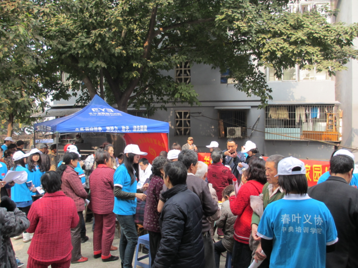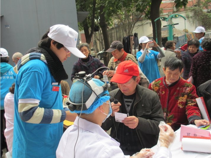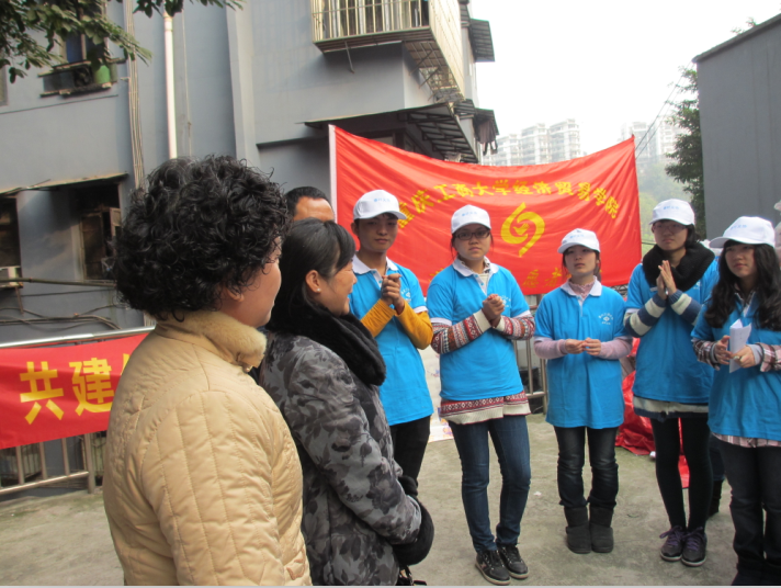 经贸义协的志愿者到达义诊地点后随即分配工作,并有序地投入工作当中:指引残疾老职工们依次到指定地点就诊,帮助武警医生记录诊断结果,分发医科知识宣传单,以及现场做问卷调查,了解残疾人的生活状况、对健康知识的了解情况和平时的娱乐活动等,各司其职。因为居住在重庆红岩职工宿舍的多数老人是聋哑人,工作中在语言交流方面有很多不便,但武警医生及义协志愿者都耐心地看老人的手势,请残联的工作者翻译,方便与老人们更好的交流。义诊工作结束后,残联的王先生、李女士和张女士对武警医生及志愿者们的帮助表示感谢,并希望以后可以和经贸义协的志愿者们继续合作,为残疾人事业继续努力。