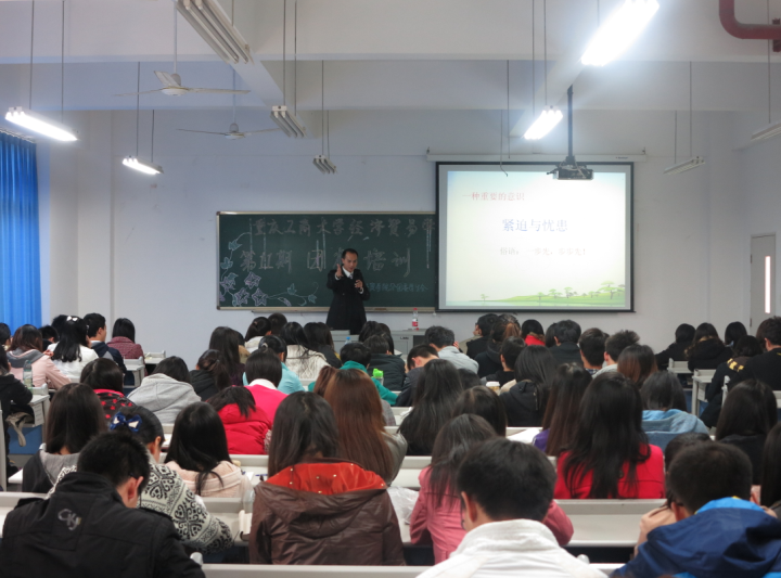 随后唐书记为全体学院进行了以为“度过有价值的老员工活”为主题的培训。唐玺副书记平易近人的讲话风格和丰富有趣的讲话内容拉近了与同学们的距离,会上同学们积极与唐玺副书记探讨交流有关社会、学习、生活等各方面的问题,现场气氛活跃。唐玺副书记还特别告诫同学们要树立竞争意识,珍惜光阴;要做到脚踏实地与仰望星空相结合;要培养远大目标,提高综合素质,做一个好干部,为充实地度过大学四年的学习生活而努力。