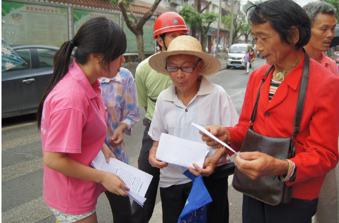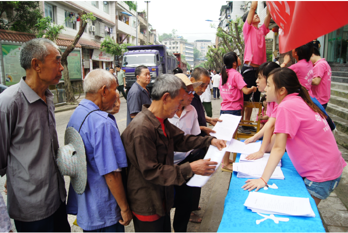 经过与政府相关负责人的前期接洽,实践团结合当地实际情况,决定以派发传单和咨询台服务等形式为村民讲解农村养老保险制度和新型农村合作医疗制度等国家相关惠农政策,同时传达重庆市第四次党代会的精神。目前在农村地区,大部分群众对国家支农惠农政策的不够了解,本次活动吸引了大批群众汇聚到咨询台边,就自身情况提出有关问题,尽管天公不作美,队员们仍然顶着大雨为村民们耐心详细地讲解国家的相关惠农政策以及第四次党代会精神并有针对性地回答了他们的疑惑。另外,实践团也通过问卷调查的形式针对一些具体的问题有了更加详细的把握和了解,为今后相关工作的开展打下了基础。宣讲会后,村民们纷纷表示对国家的政策方针有了进一步的了解,并且表达了对实践团成员诚挚的感谢。此次活动还吸引到了重庆渝北电视台的关注和采访,起到了积极而广泛的宣传效果。