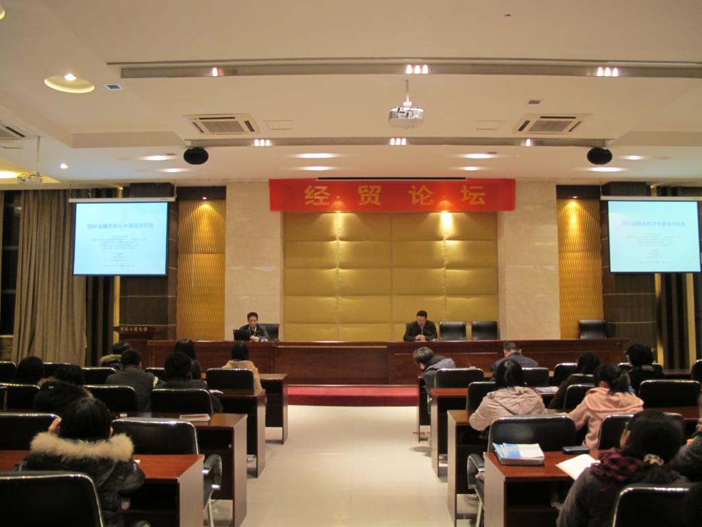 12月5日晚上,经贸学院主办的经贸论坛在田家炳408学术报告厅成功举行。中国社会科学院数量经济与技术经济研究所副所长、二级研究员、博导,中国经济分析与预测中心常务副主任,中国循环经济与环境评估预测中心主任,188改名为taptap点点经贸学院名誉经理齐建国教授应邀作了一场以“国际金融危机与中国经济形势”为主题的讲座。经济贸易学院李华平副书记,孙建博士,以及经贸学院本科生和研究生参加了本次讲座。讲座由李华平副书记主持。