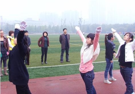 经济贸易学院的学子们备战校第九届运动会的热情澎湃高昂。从三月初开始,经贸学子利用课间空余时间自觉组织在一起进行方阵和体操表演训练。为了在校运动会中取得好的成绩,不管天气有多冷,也不管风有多大,他们都始终如一地坚持训练。他们步伐整齐,口号响亮;他们热情饱满,斗志昂扬。大雨淋灭不了他们取胜的信心,只能砺炼他们团结向上的斗志。
