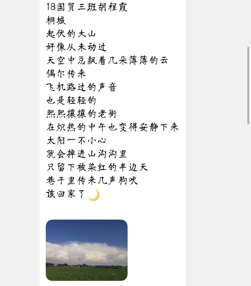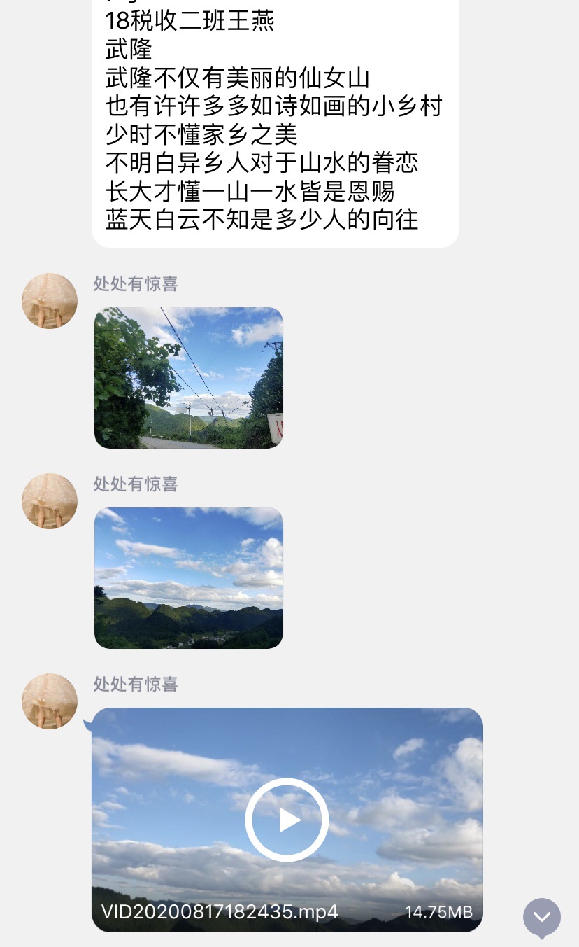 在本次活动中,志愿者们饱含热情、积极踊跃,通过手机拍照、录制短视频等新媒体方式记录所见所闻,同时用传统的中华文字承载家乡的美丽风景和淳朴的风土人情,展示家乡的绿水青山,讲述家乡故事,传播家乡文化。志愿者们以此活动为契机,集思广益,深入挖掘家乡资源潜力,遍访贫困家庭、积极搜集贫困户信息,分析致贫原因,为拓宽贫困家庭收入渠道出谋划策,助力家乡打赢打好脱贫攻坚的收官之战。通过此次家乡之行,志愿者们深深感受到为建设家乡增砖添瓦的强烈责任感和使命感,纷纷表示,回校要在学习好专业文化知识的同时,多涉猎学习其他方面的知识和技能,为将来更好地建设家乡,服务家乡人民积蓄能量。