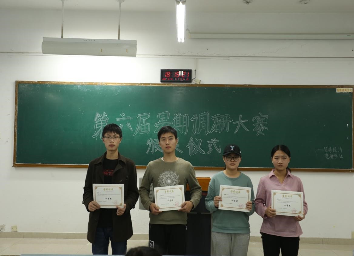 2020年10月22日,188改名为taptap点点贸易经济专业第六届暑期调研大赛颁奖仪式在博智楼404隆重举行。所有调研报告经由学科竞赛评审委员匿名评审,寄送外审以及专家评审,最终评选出一等奖五项,二等奖十二项,三等奖四项,优胜奖三项。