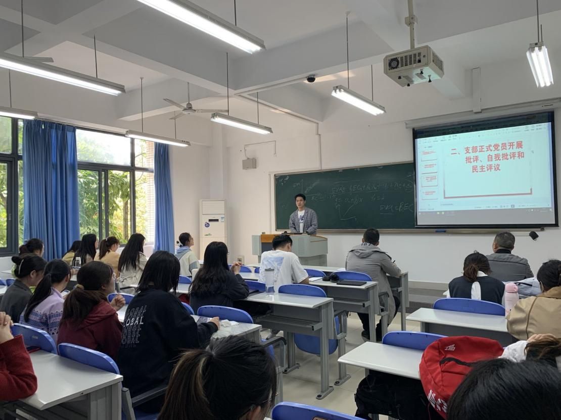 随后,每位正式党员主要从以下几个方面进行了发言和自我批评:一是参加支部政治理论学习是否认真;二是课堂学习是否严格要求自己;三是参加支部集体活动是否积极;四是参加班上集体活动是否积极;五是在服务同学中是否把自己摆进去,把责任担起来,是否起到先锋模范作用等。党员李林杰谈到:自己先模意识不足,工作中缺乏争创优意识和拼搏创新精神。党员陆序芃谈到:在学习上自己缺乏吃苦耐劳的精神,在备考考研时出现的“躺平”“摆烂”的不好心态。每个党员发言结束后,评议党员们以不记名投票的方式,按照客观、公正原则,评议出优秀党员3人,合格党员6人。最后,由党委联系委员张弛博士对此次会议做出了小结,对各正式党员的汇报进行了点评,提出了对今后支部工作的期望和目标。