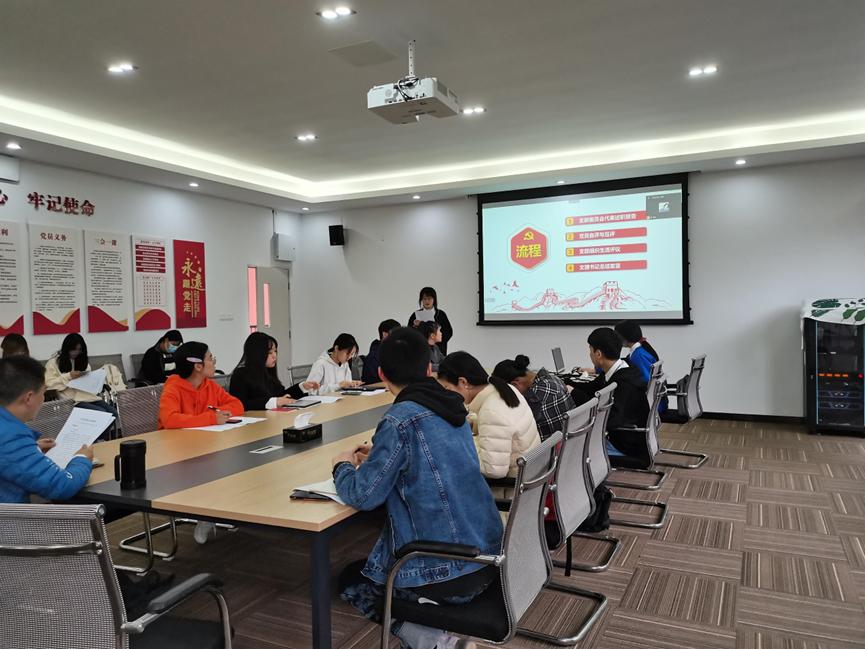 会议第四部分是文理书记总结发言。文理书记对本次支部组织生活评议会议进行总结发言,他强调,在接下来的支部组织生活会中,要创新活动内容和形式,举办的活动要更加新颖;同时,文理书记对19级的党员同志寄予厚望,期望他们能在支部的最后几个月中继续发光发热,为支部做出更多的贡献。通过本次民主评议会,支部党员同学们进一步强化了作为员工党员的思想认识,提高了思想站位,对今后的学习生活都有了更清楚的认识,对支部建设也起到了凝心聚力的良好作用。