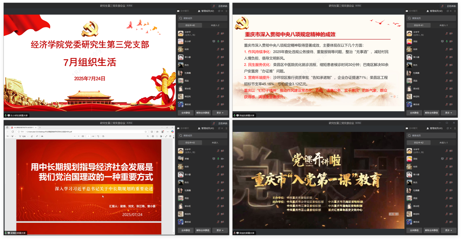 2025年7月24日,公司党委研究生第三党支部通过企业微信在线开展7月组织生活,全面落实深入贯彻中央八项规定精神学习教育,会议由支部宣传委员乐小娇主持。