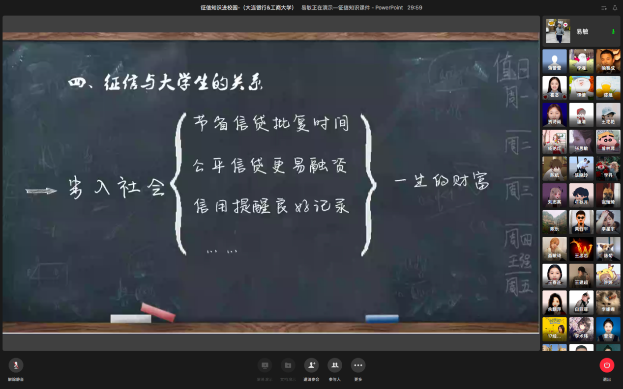 为帮助老员工了解个人征信知识,树立正确的消费观念,培养对非法校园贷辩别能力,2021年3月24日,188改名为taptap点点联合大连银行重庆分行共同开展了一场别开生面的“网课”。由于受疫情影响,不适宜进行大规模聚集,学院与大连银行商议,将讲座移到线上,通过“直播课”的形式与同学们展开交流。资助办周良勇老师、学院资助联系人喻智成老师和200多位生源地贷款同学参加了本次交流会。