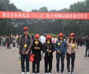 巍巍歌乐山下,11·27死难烈士墓庄严肃穆,红岩广场上聚满了来祭奠先烈的人们。在深沉的音乐声中,党服的同学随群众一同低头默哀,深切缅怀革命先烈,并对革命先烈的功绩致以崇高的敬意。默哀完毕后,同学们拿起手中的菊花,怀着崇高的心情,将菊花摆在先烈长眠的土地上,以寄托哀思。缅怀仪式结束后,各位站长以及站员们席地而坐,对今天的活动做了深刻的思想总结,刘静站长带头发表感想,她说:“62年前的今天,300多名被关押在“中美合作所”重庆集中营的革命之士慷慨赴难,壮烈捐躯,为了崇高的革命理想,为了全中国的独立解放,甘愿牺牲自己,这种视死如归的奉献精神和爱国情怀值得每一个老员工学习。”田园同学也说:“作为当代老员工,我们承载着祖国的希望,我们要继续发扬伟大的红岩精神,用实际行动诠释信仰与执着的伟大力量。”站员们积极发表自己的感想,纷纷说出此次活动对自己的深刻影响。