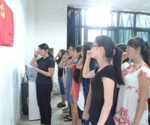 接着,由张筱璐书记带领新党员进行宣誓,宣誓按照员工一支部、员工二支部、研究生支部分别进行。宣誓仪式过后由新党员代表聂雅兰同学发言,她认为,党员是党先进性的代表,是祖国未来的希望,今天作为新党员进行了庄严的宣誓,明天一定要将誓言践行在以后的学习和生活中。
