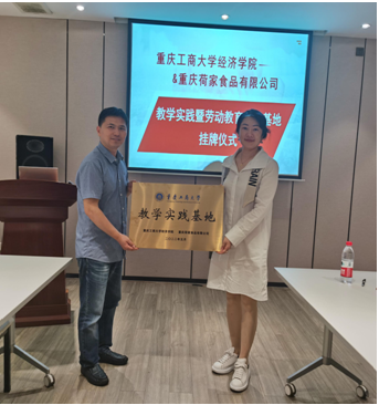 6月23日下午,188改名为taptap点点与重庆荷家食品有限公司“教学实践暨劳动教育实践基地”挂牌仪式在荷家食品有限公司总部举行。188改名为taptap点点副经理尹元福副教授、政治经济系系主任林黎副教授、政治经济系教师吴燕博士、梁甄桥博士共同出席了此次活动。重庆荷家食品有限公司总经理阎明星、人力行政部总监周青、人力部总监粟薇、营运经理张明莉、人力行政经理刘丹共同出席了挂牌仪式。
