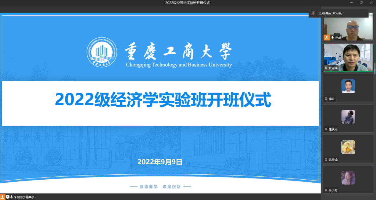 2022级经济学实验班开班仪式于2022年9月9日上午10:15在企业微信平台上进行,公司党委书记李自维、副经理尹元福、应用经济系主任李然和副主任田庆刚、政治经济系主任林黎、相关教师代表及2022级经济学实验班全体新生参加了此次活动。活动共分为六项议程:尹元福副经理代表院领导班子致辞、系主任介绍实验班具体情况、教师代表唐路元教授发言、班导师熊兴老师发言、2020级经济学实验班代慧玲同学发言、2022级经济学实验班刘诗雨同学发言。