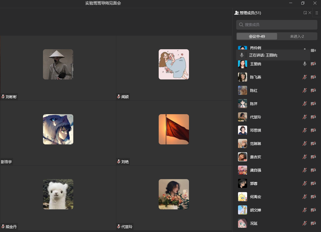 9月30日中午1点,公司2020级经济学实验班班导师线上见面会顺利召开。班导师王丽纳、肖伶俐,辅导员张涛老师以及实验班全体同学通过企业微信参会。