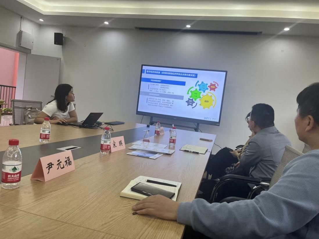 在与学堂在线代表的交流中,双方围绕AI教学辅助的应用展开了深入探讨,重点讨论了如何通过AI技术辅助教学,帮助员工更直观、灵活地学习专业知识。杰科力代表则详细介绍了其平台在宏观经济学模拟实验课堂上的应用实例,展示了其在数字经济学算法工具教学中的先进示范。