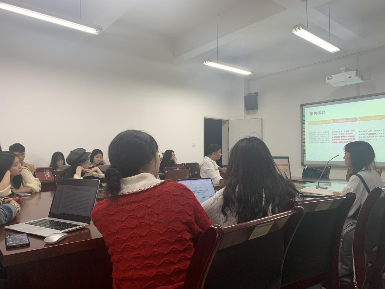 杨清媚同学从马克思主义政治经济学角度出发,对提高我国劳动者工资收入的理路做了三个维度的理论与现实分析,并指出要改善劳动力再生产条件、畅通劳动者提升渠道、构建和谐劳资关系。随后,2020级人口、资源与环境经济学的赵弈秋同学指出生态系统服务流可清晰反映流域上下游生态系统服务供受区范围、客观计算生态系统服务补偿标准,成为生态补偿研究的新切入点,并介绍了如何利用供需平衡模型和风沙扩散模型模拟石羊河流域主要生态系统服务的流动特征,据此来确定供受区范围以及补偿标准。此次学术分享会引发了新、老同学们的热烈反响与讨论,吴艳琼、李灵芝等多名同学在会中发言,提出了自己的疑问和见解。