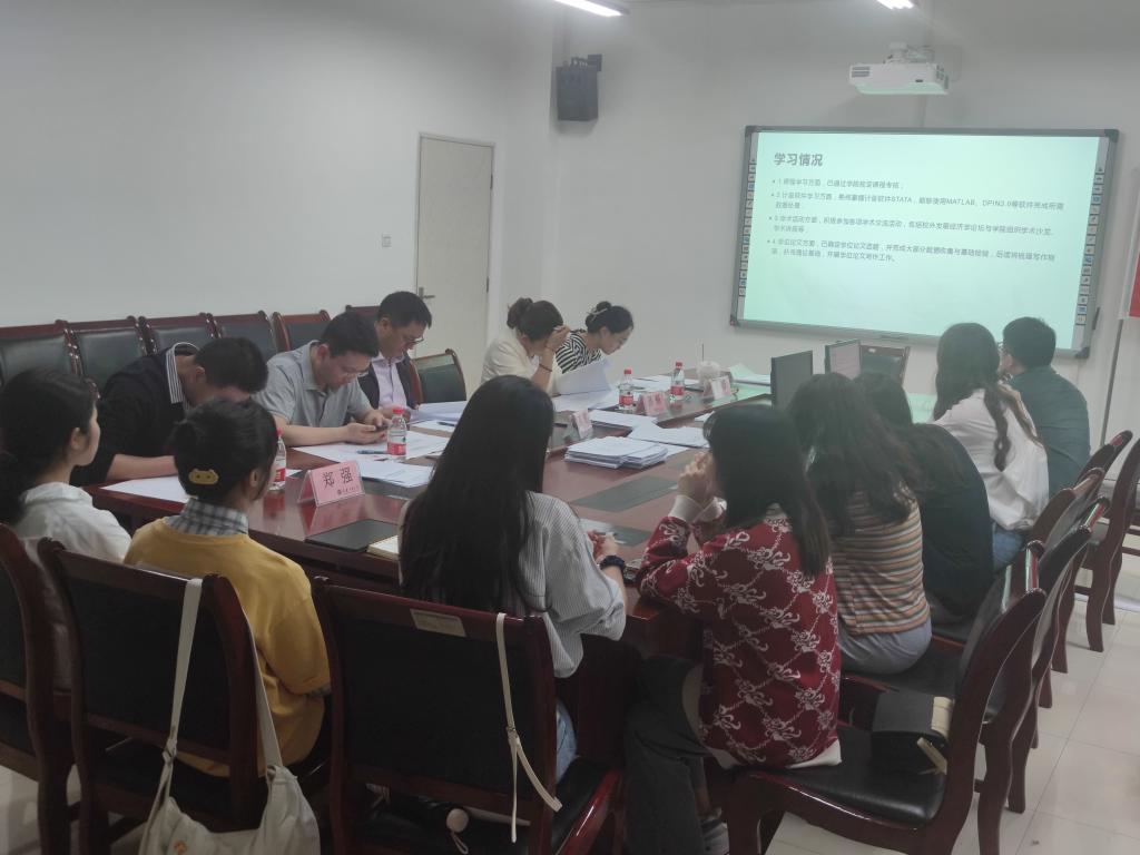 会上,同学们汇报入学以来自身的思想政治情况、社会实践情况、科研学习情况以及论文写作进度。考核小组就员工的论文进度以及课业情况进行了询问,同时对同学所存在的问题给予建设性的建议和指导。