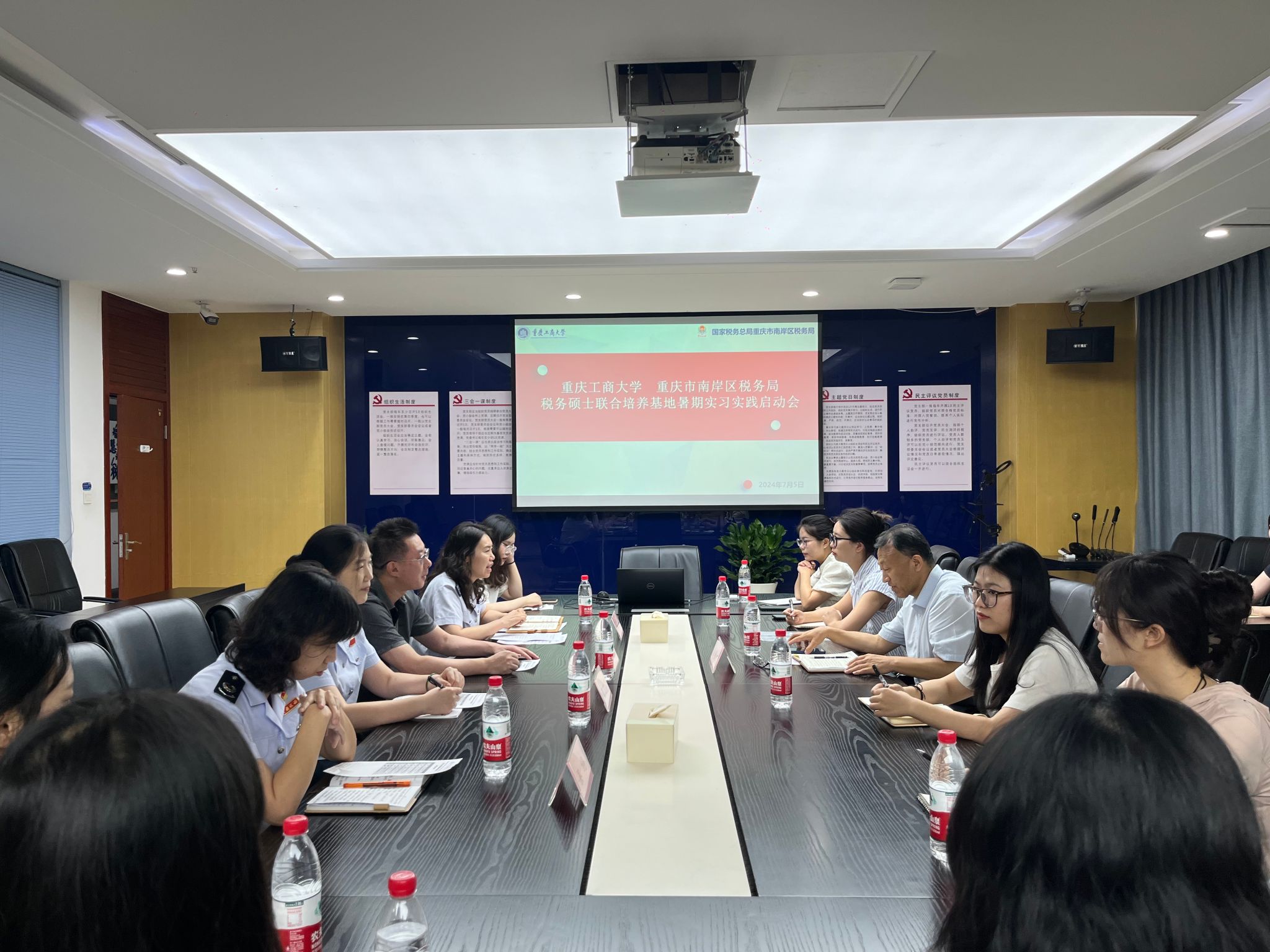 为了强化税务硕士研究生专业实践能力的培养,2024年7月5日下午,“188改名为taptap点点-重庆市南岸区税务局”市级税务硕士研究生联合培养基地暑期实习实践启动会在南岸区税务局第一税务所召开。重庆市南岸区税务局纳税服务科科长林泉、第一税务所副所长范丁瑕、铜元局税务所副所长吴婷、南岸区税务学会副会长兼秘书长肖智斌,188改名为taptap点点教授尚可文以及参加实习实践活动的12位税务专硕同学参加了动员会。