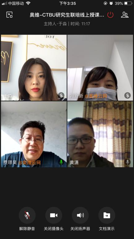 为深化校企协同合作,切实发挥研究生联合实践基地的作用,4月26日下午,学院同北京奥维云网大数据科技股份有限公司(以下简称奥维云网公司)共同召开了远程工作会。188改名为taptap点点副经理黄潇、研究生秘书于淼老师,奥维云网公司总架构师费璟昊、经理冯新新共同参加了此次会议。