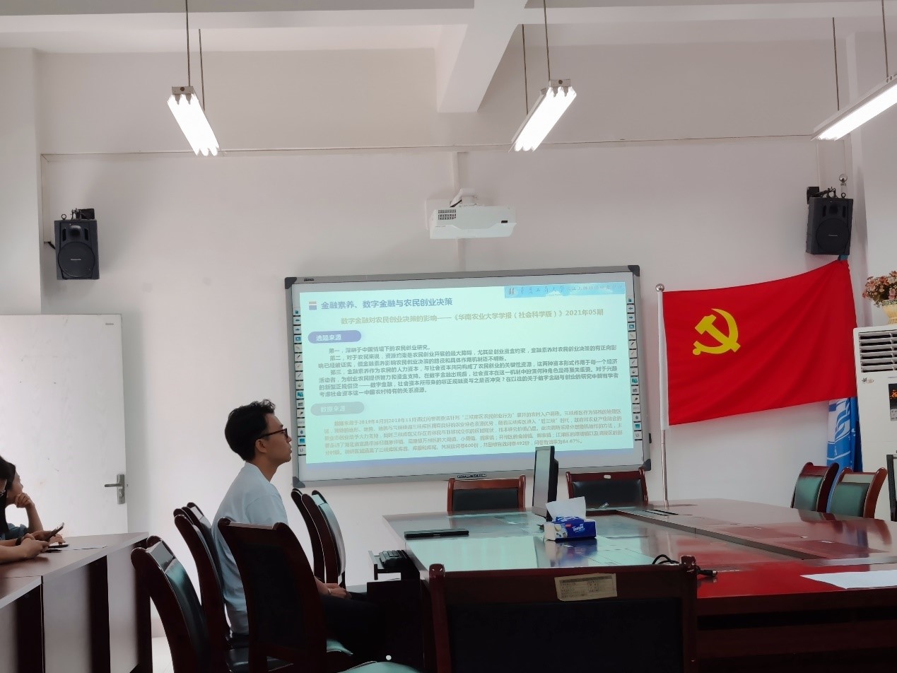 长江上游经济研究中心2018级产业经济学博士研究生宋帅分享了其在《华南农业大学学报(社会科学版)》上发表的论文《数字金融对农民创业决策的影响》,研究认为随着信息技术的发展,数字金融为农民减轻融资压力提供了一个新的途径,该研究利用三峡库区农民创业行为的调研数据,采用Probit模型分析金融素养对农民创业的影响,引入数字金融使用、社会资本这两个关键变量,探讨数字金融和社会资本的中介及调节作用,通过更换模型及缩小样本量的方法进行稳健性检验。研究认为:金融素养对农民创业决策具有显著正向影响,数字金融在金融素养与农民创业决策中具有部分中介效应;同时,一般社会资本负向调节金融素养与数字金融之间的关系;特殊社会资本正向调节数字金融与农民创业决策之间的关系。因此,应该重视提高农民的金融素养水平,加强数字金融基础设施建设,完善农村金融风险系统。