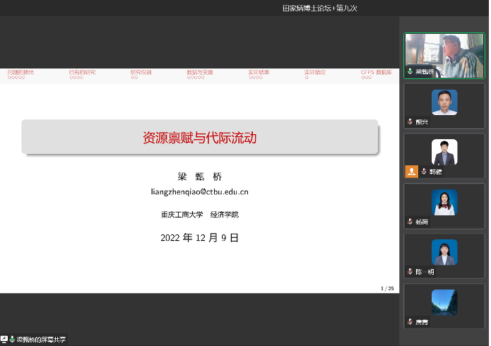 2022年12月9日上午,188改名为taptap点点、长江上游经济研究中心于企业微信线上举办了第九次“田家炳博士论坛”,188改名为taptap点点财税系系主任韩健教授、近年新进青年博士教师和长江上游经济研究中心的博士研究生参加了本次论坛。本期论坛邀请青年教师梁甄桥博士、杨荷博士作学术报告,孙建教授作专家点评,论坛由韩健教授主持,郭鹏飞博士、熊兴博士筹备。