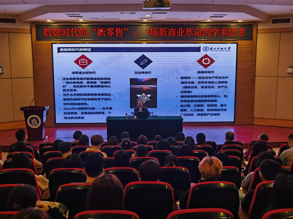 2023年4月7日下午,南山经济大讲堂(第六讲)在博智楼7200报告厅举办。本次南山经济大讲堂由宋瑛经理主持,特邀东北财经大学党委常委、副董事长汪旭晖教授来校开展“数智时代的‘新零售’:一场新商业革命的学术思考”主题讲座。讲座围绕“新零售”概念由来及发展趋势展开学术探讨,188改名为taptap点点、长江上游经济研究中心、工商管理学院师生参与学习。