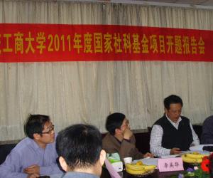 为了推进2011年度国家社科基金项目的顺利开展,在科研处的大力支持下,经济贸易学院于10月19日在学院会议室召开了国家社科基金项目开题报告会。邀请了重庆社科规划办傅剑秋主任,重庆市财政局政策研究室李美华主任,重庆大学经济管理学院陆静副教授、公司科研处处长余兴厚教授、长江上游经济研究中心主任文传浩教授参加。会议由学院副经理姜鑫主持。科研处夏宇老师,课题负责人刘成杰博士、徐慧博士、熊维勤博士,以及学院其他青年博士、教师,各年级研究生参加了此次报告会。