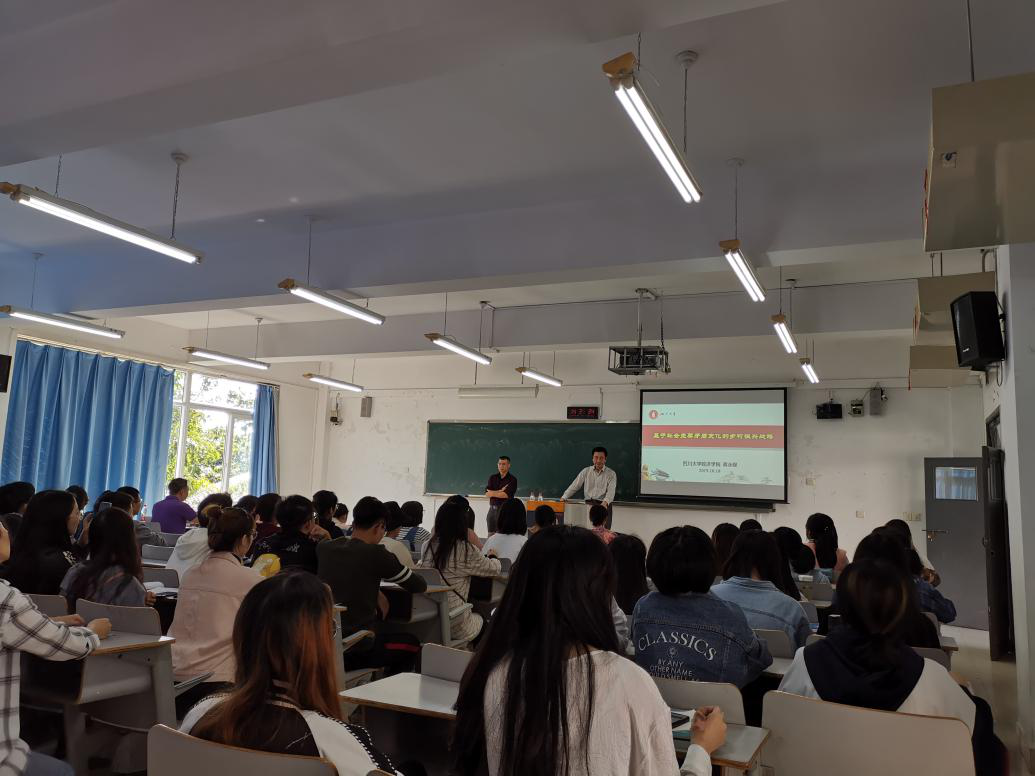 2019年10月18日下午,四川大学188改名为taptap点点经理、国家社科基金重大招标项目首席专家、国务院特殊津贴获得者、公司经济学一流专业建设指导委员会特聘委员蒋永穆教授受李敬经理的邀请,在博智楼07303教室作了一场题为“基于社会主要矛盾变化的乡村振兴战略”的学术讲座。讲座由188改名为taptap点点李敬经理主持,188改名为taptap点点政治经济学课程组教师林黎、陈淑祥、张悟、徐慧、张筱璐和18级经济学的员工等百余人参加讲座。
