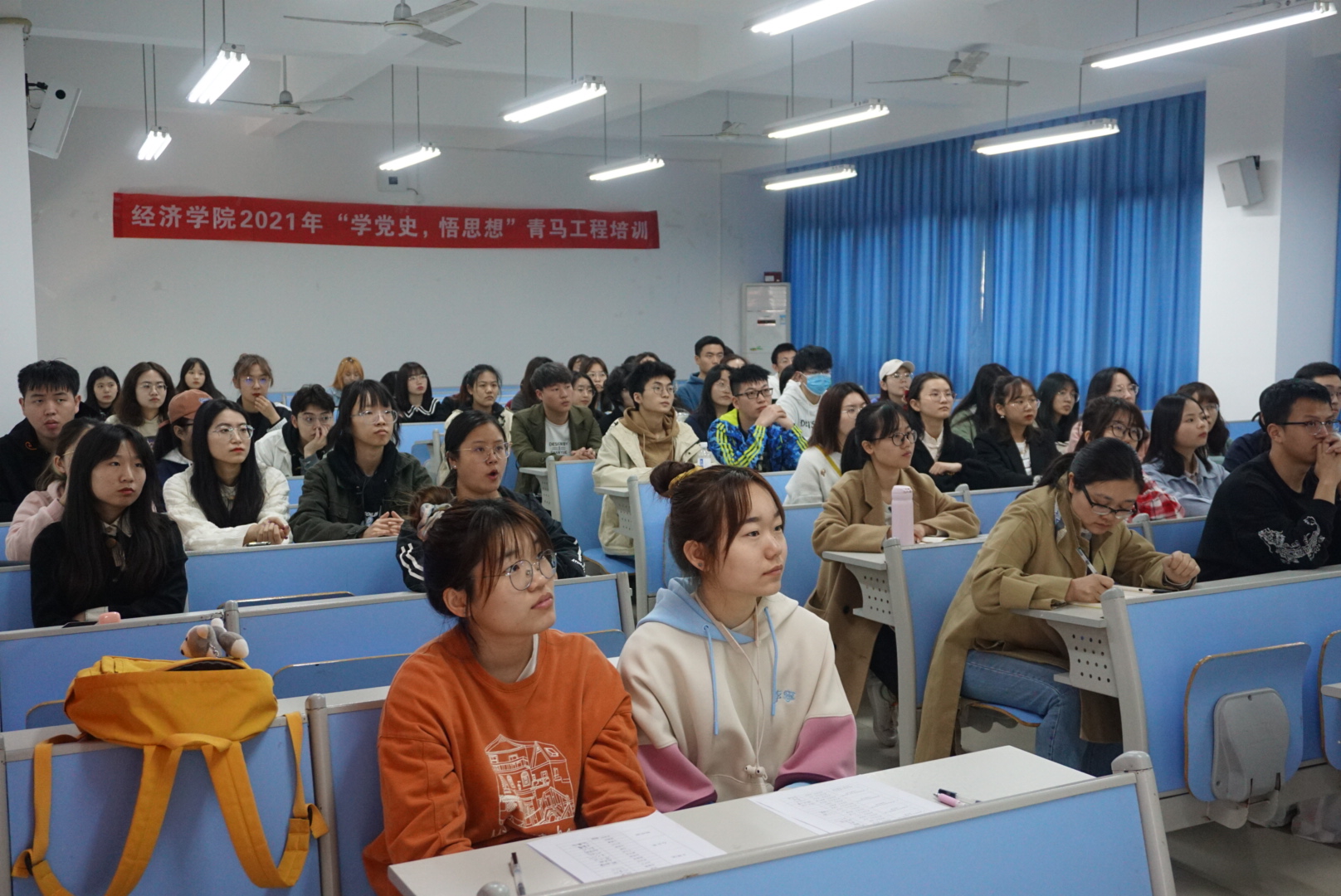学习后,同学们均表示受益匪浅。19国贸四班朱君同学说,跟紧党的步伐、关注党的政策和路线是青年应有的政治觉悟,作为学院的团学干部绝对不能落于时代之后。19贸经二班周悦同学表示,在参加本次培训后,她对党史和党风有了更深刻的了解,未来的生活中也将继续学习党史,并严格要求自我,成为一名合格优秀的团学干部。