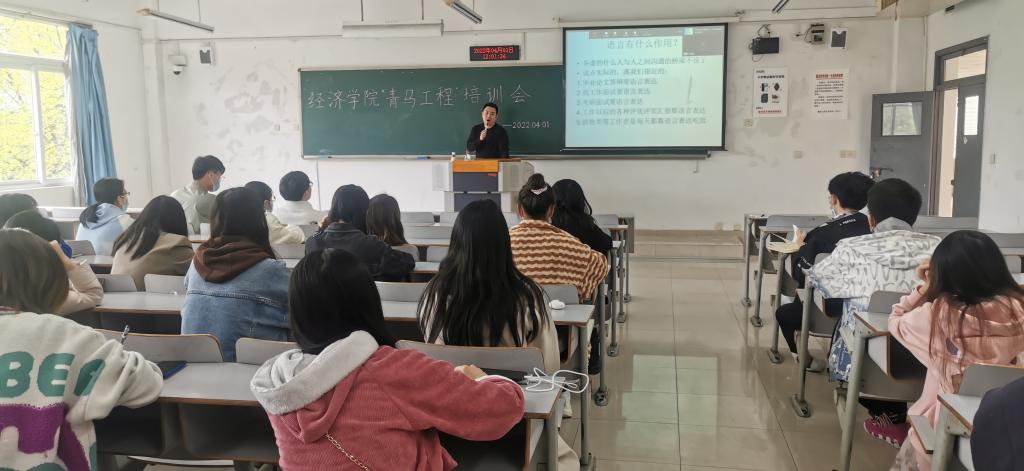 演讲口才提升的培训中,封海粟老师分别从语言的作用、表达能力,以及诸多表达技巧进行介绍,并邀请参训学员体验呼吸、发音等训练,通过理论加实践的方式带领着同学们感受语言的魅力。校团委陈琛老师从员工干部作为出发点,进行综合能力提升相关培训。陈老师主要围绕着试错机会、换位思考、大局意识以及执行力的养成等方面给同学们提出了几点建议。会后,老师还对同学们表达了祝福,希望经院学子们能够努力成长为“政治坚定,德才兼备,素质全面,堪当重任”的青年马克思主义者。最后,马克思主义学院的魏新欣老师分别从何为“四史”,学习“四史”的原则和方法,以及深入学习理解“四史”历程中的重要问题逐一深入为学员们进行了讲解。并提到希望同学们能够通过深入学习四史,努力实现以史鉴今,把握规律、增强定力、汲取智慧,把所学所感运用到生活学习中来。