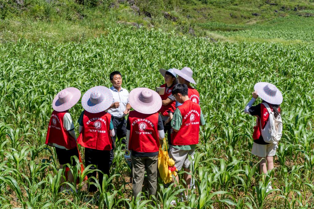 (官田村党支部书记谢兴林带领促进团同学调研高粱基地)