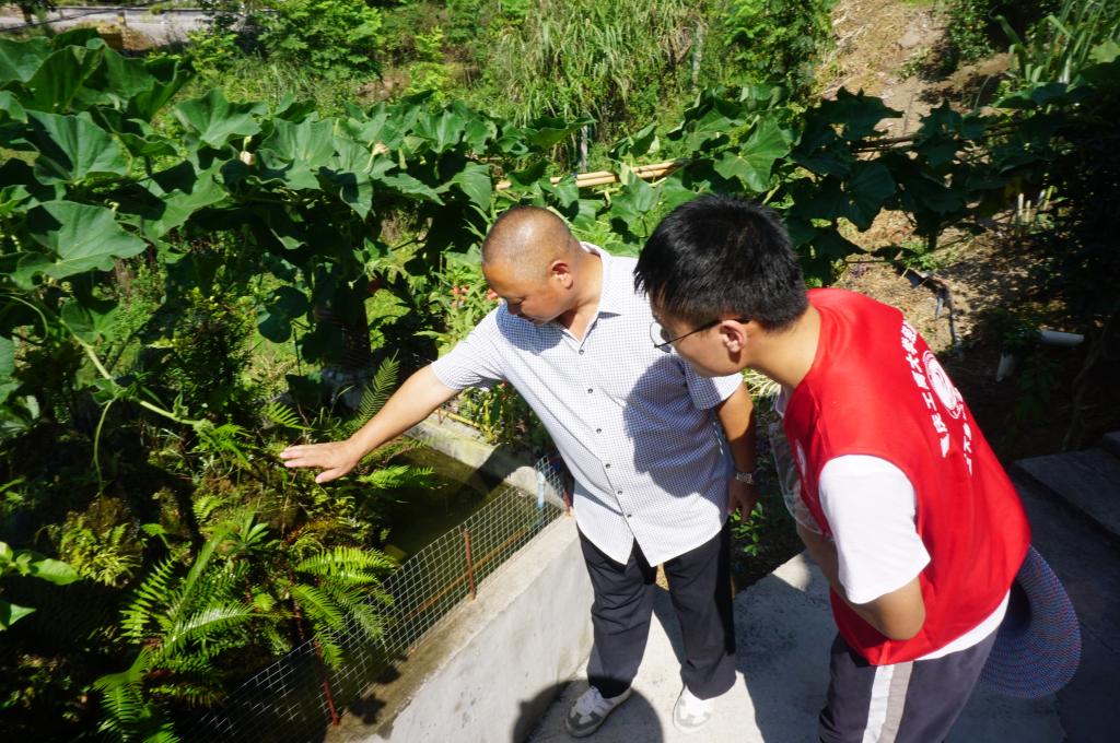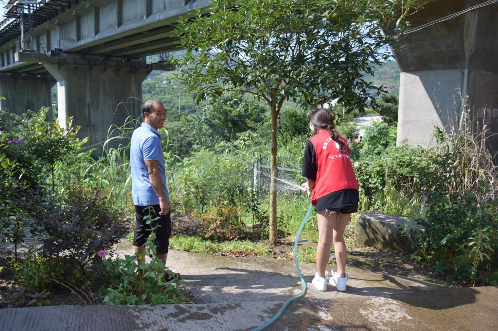 (促进团成员帮助村民浇灌绿植)