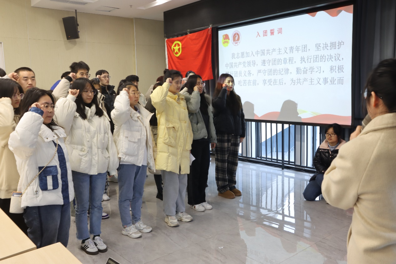 “我们是五月的花海,用青春拥抱时代”。新老团员们以激昂的歌声唱出心中自豪与担当,他们表示将在今后的学习生活中进一步明确团员义务,勤学致知,踔厉奋发,砥砺前行,不断争做新世纪的优秀青年团员,为实现中华民族的伟大复兴贡献青春力量,努力谱写出更加壮丽的青春之歌。