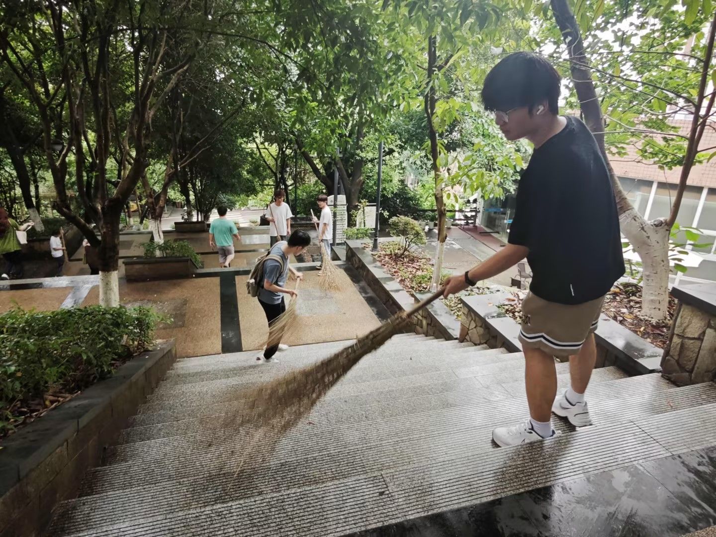 同学们分工协作,或两人结伴,或三五成群,有弯腰扫地的,有收拾倾倒垃圾的,有穿过树带清理杂物的,有为绿化带里的小树细心培土的。“劳”中悟美,“动”中长技。在班长的带领下,同学们将环保理念融入到动手实践中,增强了爱护校园保卫校园的责任意识。热爱劳动,崇尚劳动的理念潜移默化地浸润了员工的心田。