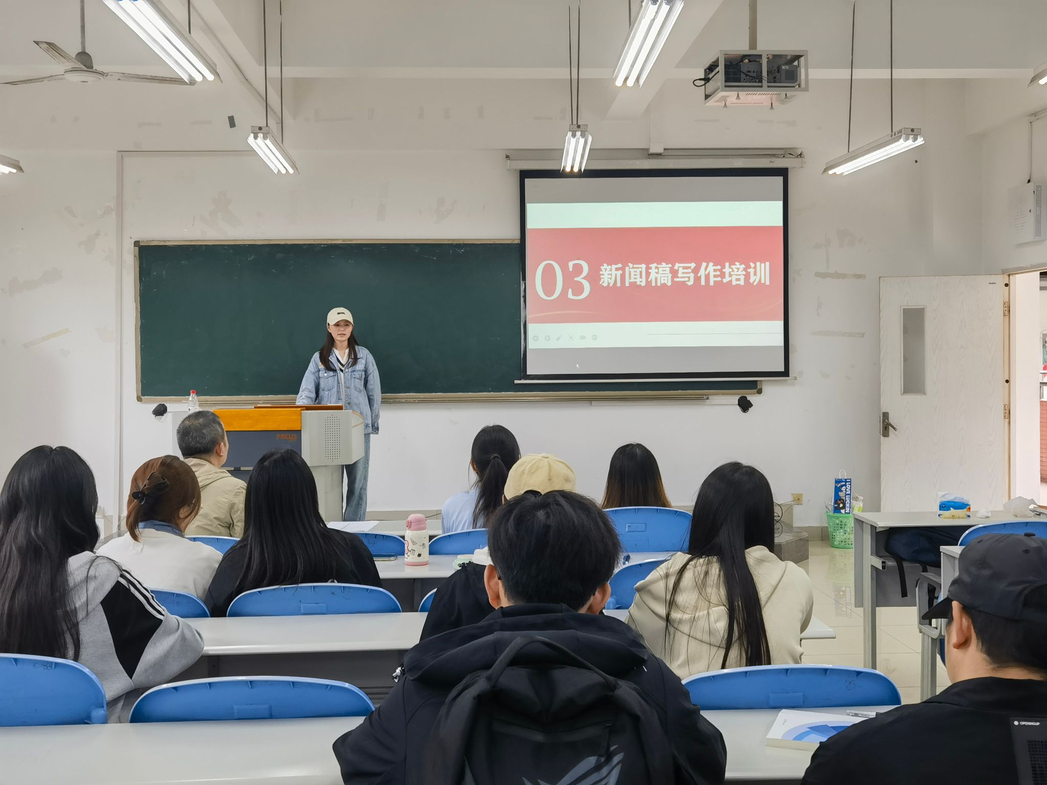 上一届的员工助理夏敏学姐对新闻稿写作进行了培训。她从新闻稿的基本结构、写作要点和注意事项作了详细讲解,她强调新闻稿不仅要具备清晰简洁的语言表达,还要能突出事件的重点和亮点。她还通过大量的图片案例就照片拍摄方面进行了培训,向员工助理们展示拍照技巧和手法,以获得最佳的拍摄效果。