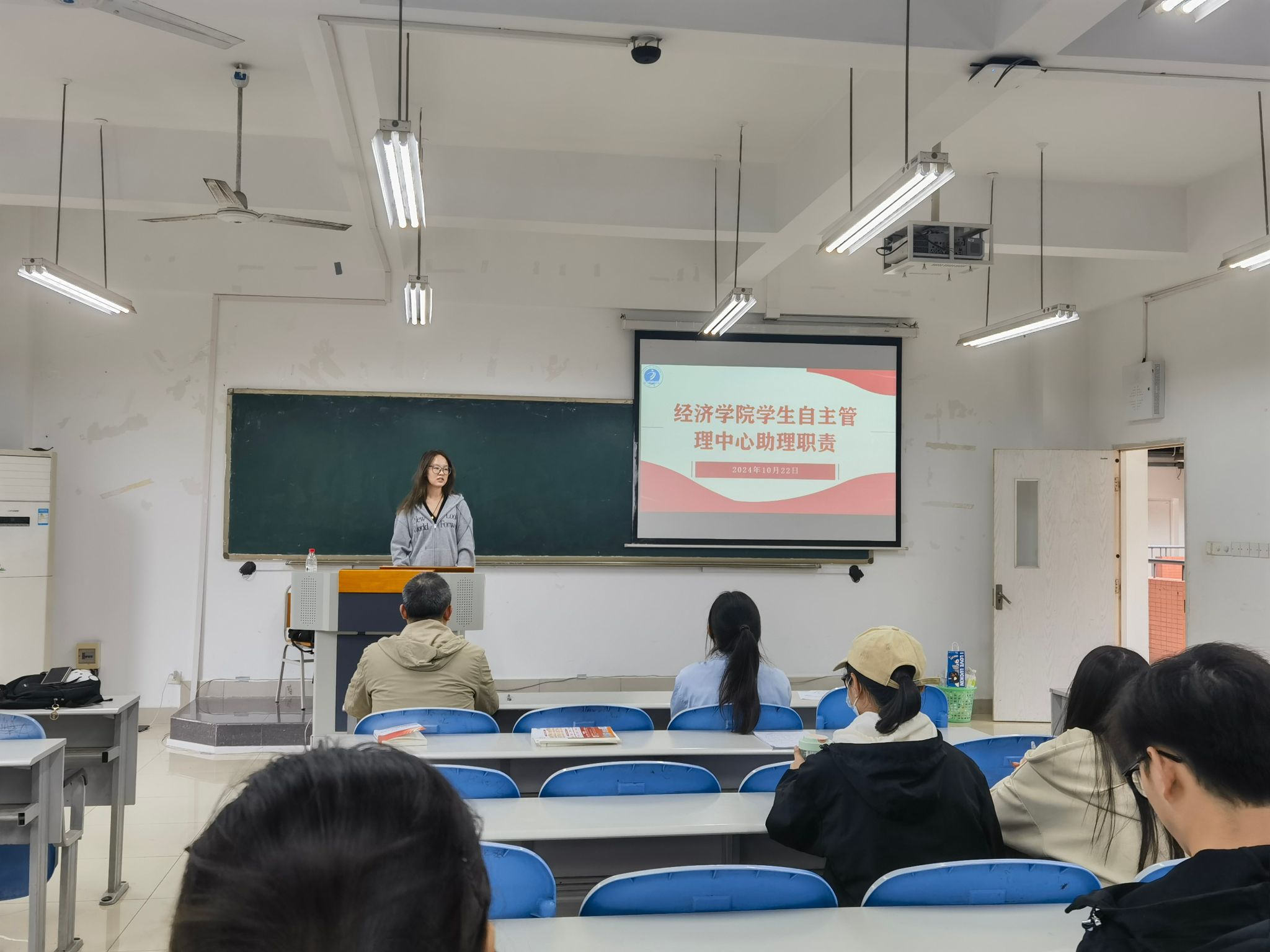 康欣总助理详细讲解了总助理、年级助理、行政助理、辅导员助理、学风督察的各自职责,她强调,员工助理们要明确自己的角色和定位,树立服务意识,积极主动为学院老师和同学们服务。