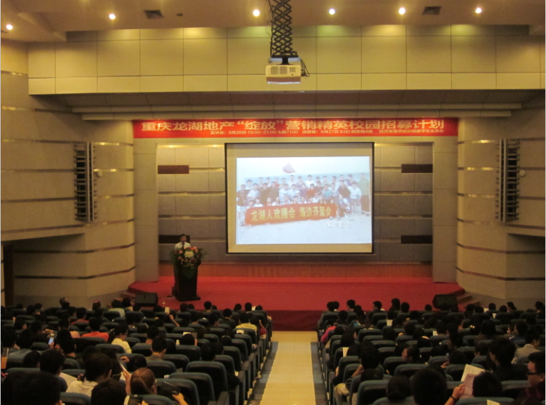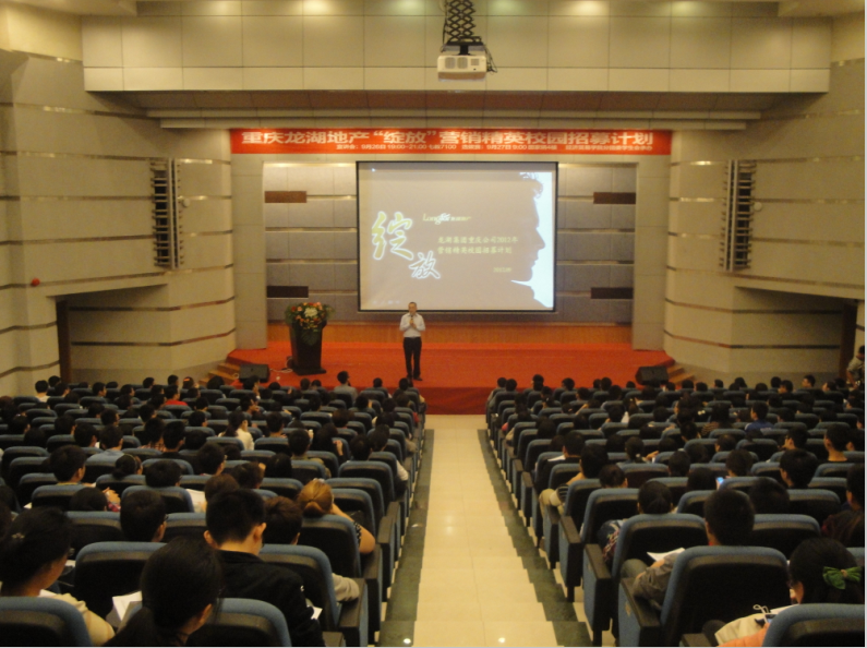 此次宣讲会旨在为重庆龙湖地产“绽放”营销精英校园招募计划招募更多的营销人才,同时为2013届应届毕业生的就业方向提供一个选择,更可以使各学院学子通过宣讲会的形式感受龙湖地产优秀的企业文化,得到了师生的一致好评,已在各高校取得了良好的品牌效应。