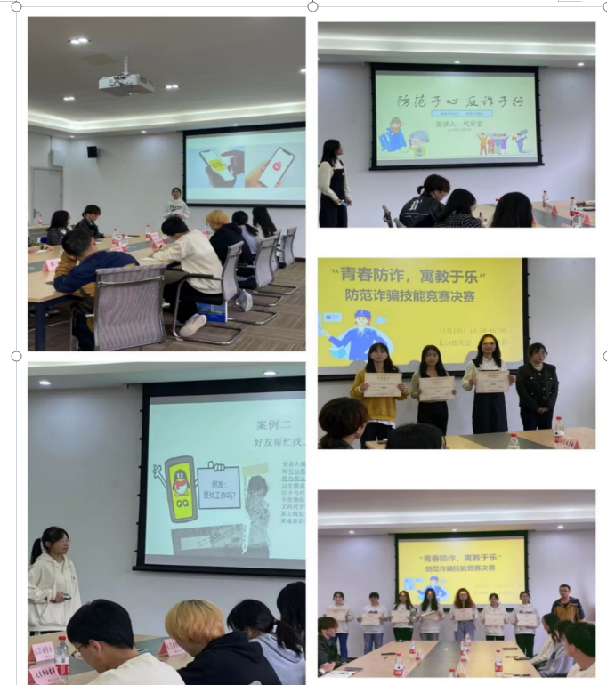 本次竞赛主要分为初赛和复赛两个部分。初赛的形式为防诈骗知识答题,复赛的形式为防诈骗知识PPT的制作与宣讲。初赛共有130余位同学参与,通过防诈骗知识答题得分,刷选出43人进入复赛的环节。复赛又分为PPT制作和宣讲两个环节,通过对43名同学的PPT展示进行网络投票,选出10人进入PPT宣讲环节。在精彩PPT宣讲决赛环节,进入宣讲环节的10位同学各展风采,竭尽全力地讲好自己的宣讲内容。宣讲主题围绕“虚假投资诈骗”、“冒充熟人诈骗”、“客服退款诈骗”、“二手交易诈骗”或其他新型诈骗,内容涵盖诈骗类型包括刷单返利、假冒购物平台、网恋、信用卡相关业务、假冒亲朋好友和意外中奖等。