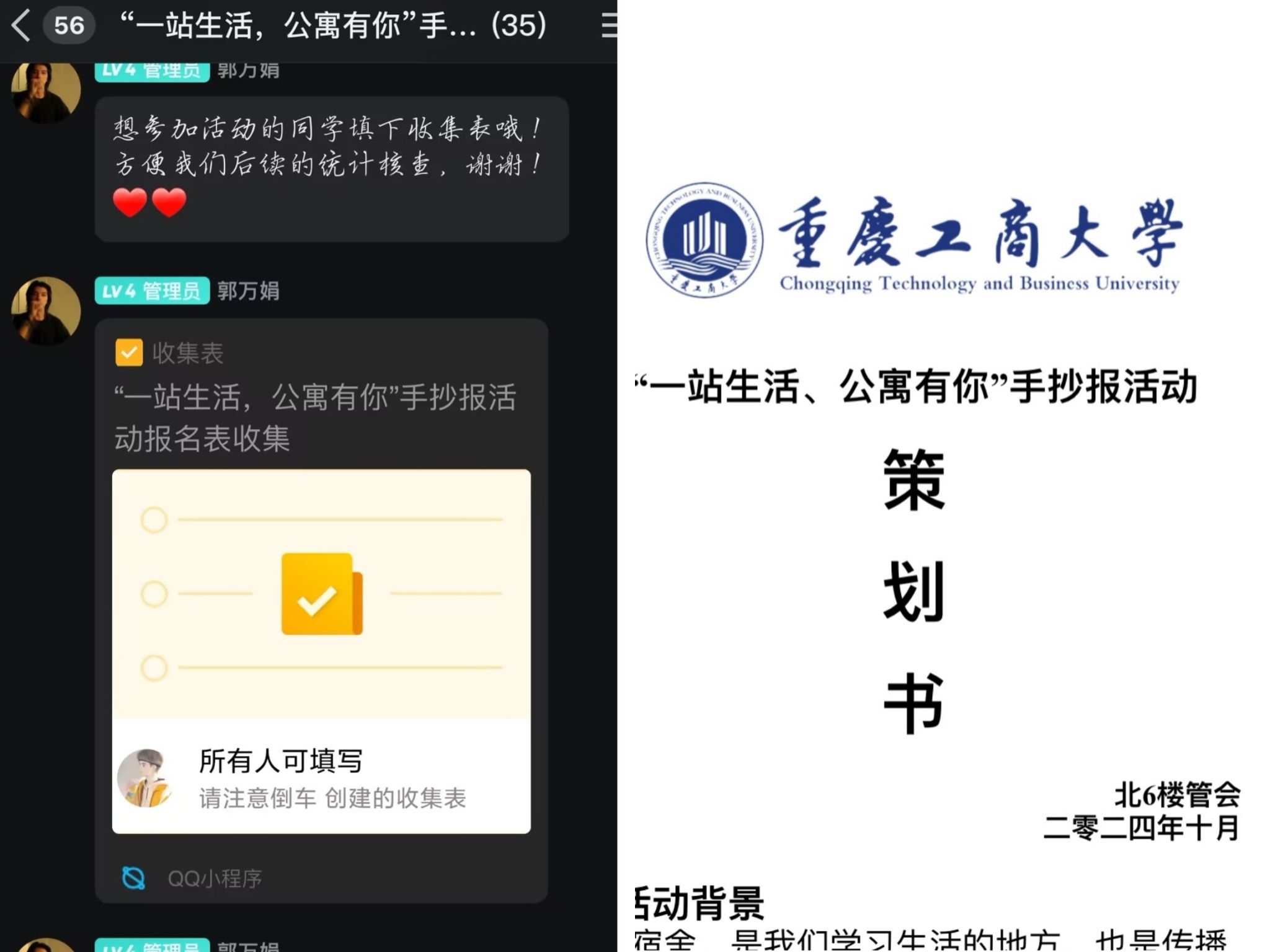 宿舍,是我们学习生活的地方,也是传播信息、交流思想、探讨问题、表现自我的重要场所。寝室,是校园文化的窗口,寝室成员的生活习惯影响着每个成员的生活方式,学习态度、行为规范、价值理念和理想信念。在2024年11月10日-2024年11月20日,北6楼管会举办了以“一站生活,公寓有你”为主题的手抄报活动。此次活动旨在培养同学们的动手创新能力,增进对一站式公寓建设意义的理解,同时深入领会习近平总书记对青年人的期望。