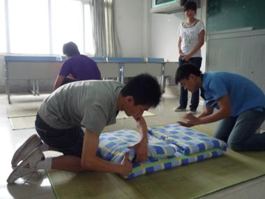 活动开始,冯老师向在座的各位同学强调寝室安全责任重大、寝室卫生刻不容缓,让同学们加深了对寝室安全卫生重要性的认识。此次活动注重以比赛的形式使卫生内务知识深入同学们的心中,活动主要分为四个环节,分别是知识竞答环节,捅被叠被环节,叠衣服环节和观看视频环节。在知识竞答环节中,分为风险题和抢答题,六组参赛选手展开了激烈的竞答,在抢答环节中也表现得非常积极,纷纷举牌抢答。捅被叠被比赛和叠衣服比赛迎来了活动的高潮,六组参赛组可谓是“八仙过海,各显神通”,每一组参赛队伍都拿出了他们的看家本事,纷纷快速高效地完成每一项任务。这一环节,由于有两对选手成绩相同,还额外进行一场“加时赛”,以谁叠的衬衣更整洁为判断依据。最后,活动以一段生活小窍门视频作为尾声结束。