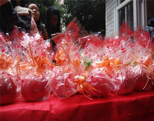 平安夜,即圣诞前夕,在大部分基督教国家是圣诞节节日之一,但现在,由于中西文化的融合,已成为世界性的一个节日。平安夜还没到,一种叫做“平安果”的礼物,开始在人们手中悄然传递。因为“平安果”被赋予了着平安、祥和之意且“平安果”取了“苹果”字音,所以在平安夜到来前,朋友间相赠“苹果”代表了送给友人美好的祝福,祝福大家新的一年平平安安。北六楼管会一直秉承“规范与关爱”的宗旨,于平安夜这一天即2014年12月24日中午12点20在北六门口举行了“平安夜送苹果,传递祝福”的活动。