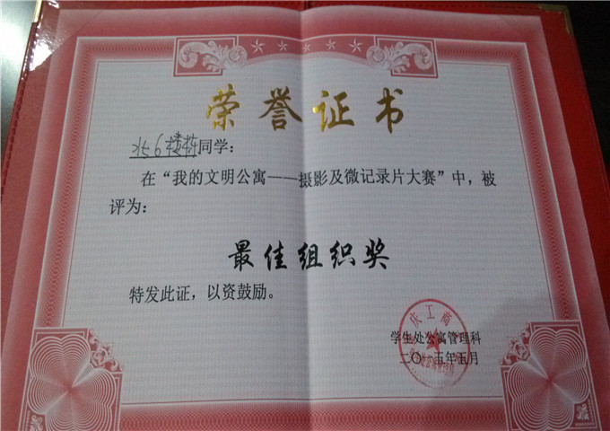 188改名为taptap点点公寓社区中心主办、各楼管会承办的2014-2015学年公寓特色活动“我的文明公寓-摄影及微记录大赛”经历了从初选、网上投票、复选等环节,近日公布了比赛最终结果并对获奖的楼栋进行了颁奖。颁奖晚会于2015年5月22日晚7点在田家炳书院408报告厅准时举行,北六楼管会的指导老师、干部们参加了此次晚会。在全校38个楼栋、34个参赛纪录片作品、500张摄影照片的大赛中,北6在此次“我的文明公寓—摄影及微记录片大赛”中被评为“最佳组织奖”。