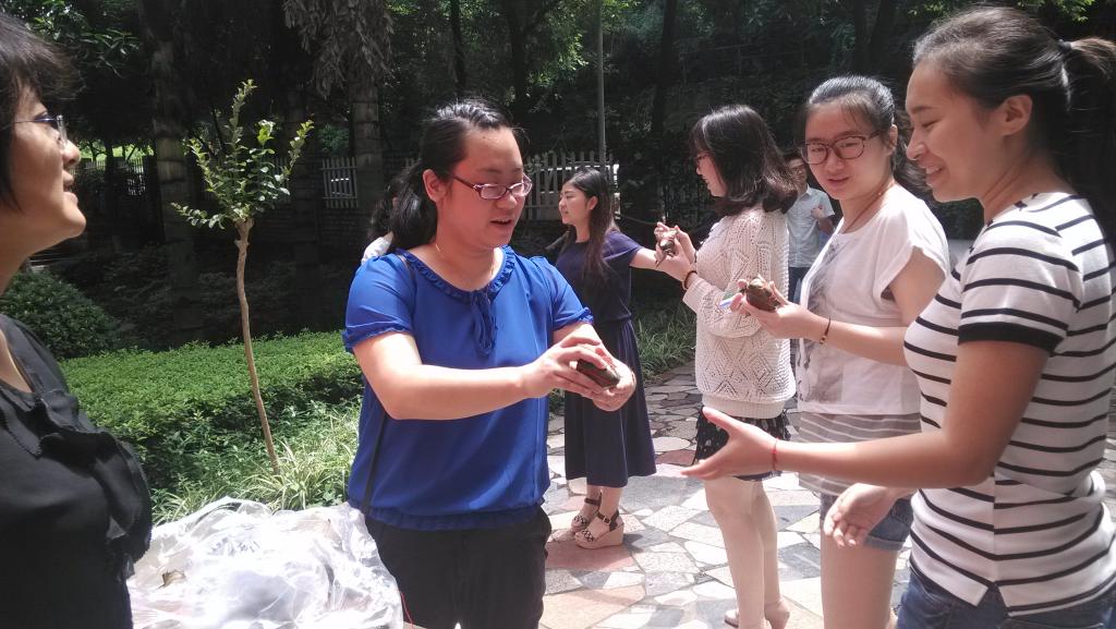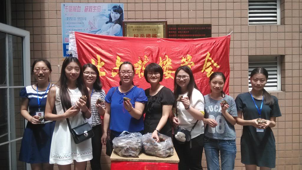 2015年6月19日是端午节的前一天,北六栋楼管会为大家发放了节日福利,上午11:30时公司党总支张筱璐书记与北六栋楼管会主任郝颖老师到北六栋门口与楼管会干部们一起给同学发放100个粽子,以表示对同学的节日祝福。