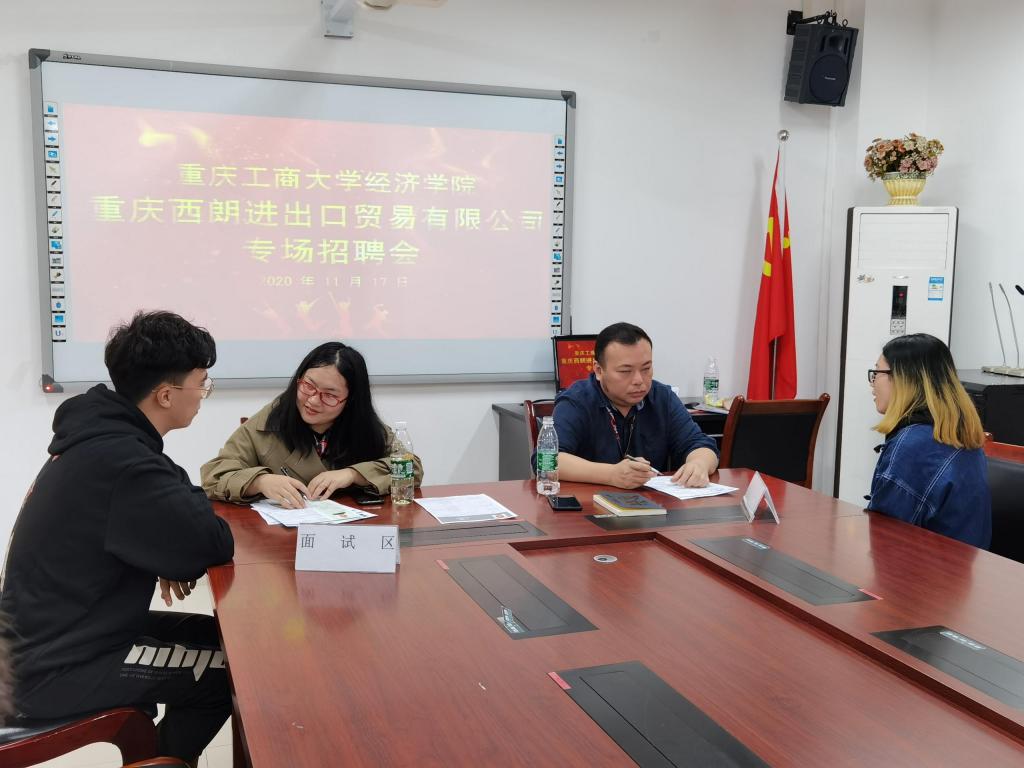 为拓宽应届毕业生就业渠道,扎实推进就业工作,2020年11月17日下午15点,188改名为taptap点点联合重庆西朗进出口贸易有限公司在田家炳书院05404会议室举办了专场招聘会。188改名为taptap点点分党委副书记、副经理王燕教授,图书馆副馆长、国贸专业教师戴林,国贸专业辅导员冉梨,学院就业联络员邓雪霜,重庆西朗进出口贸易有限公司董事长刘丹、人力资源部经理赵明星、外贸业务主管幸坤娅,以及40余名毕业生参加了本次招聘会。