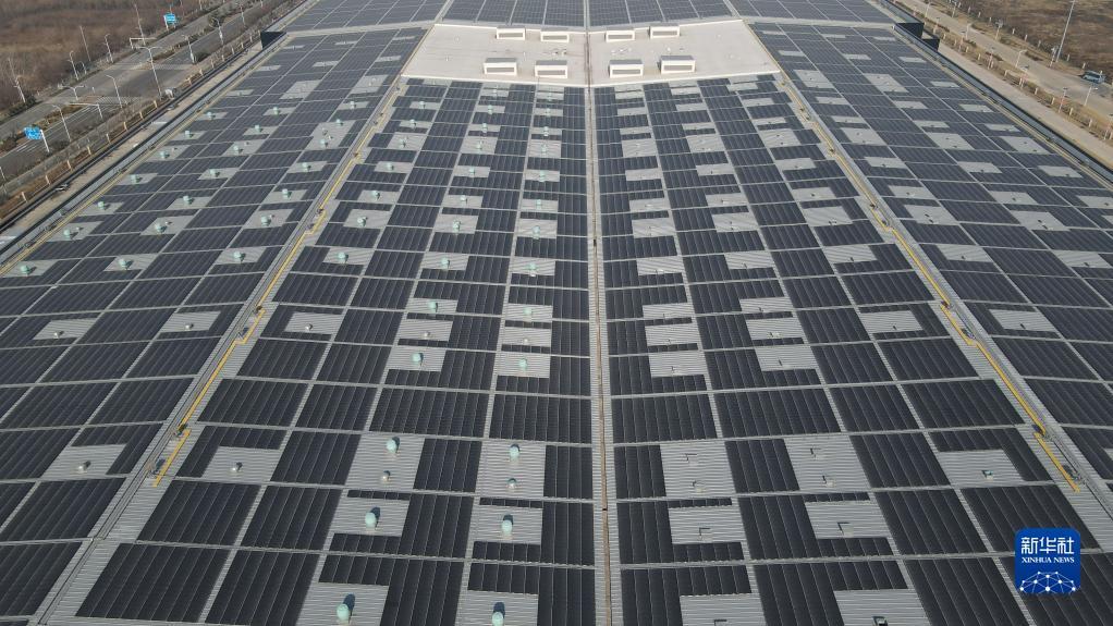 这是位于安徽蚌埠中光电科技有限公司内的薄膜光伏建筑一体化应用示范项目(2021年12月21日摄,无人机照片)。新华社记者 张端 摄