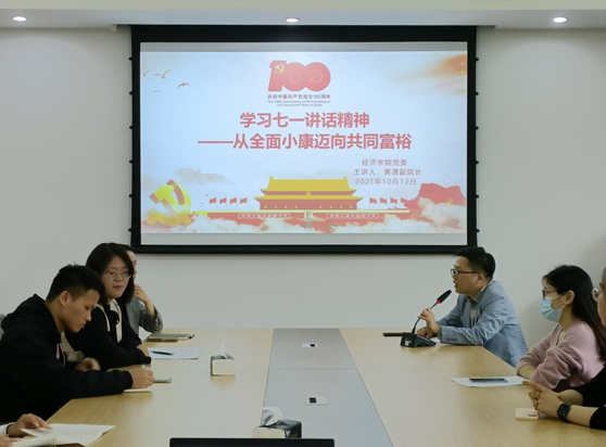 10月12日,研究生第一党支部在田家炳406开展学习“‘七一’讲话精神——从全面小康迈向共同富裕”专题党课活动。此次党课由公司党委委员黄潇副经理主讲。