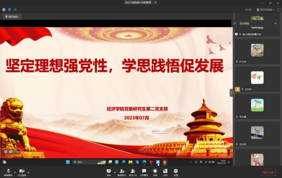2023年7月21日上午,公司党委研究生第二党支部在企业微信以线上的形式开展2023年7月组织生活暨主题党日活动,活动由二支部党员王伟婷同志主持,支部书记高娟同志和二支部全体党员参加本次学习活动。